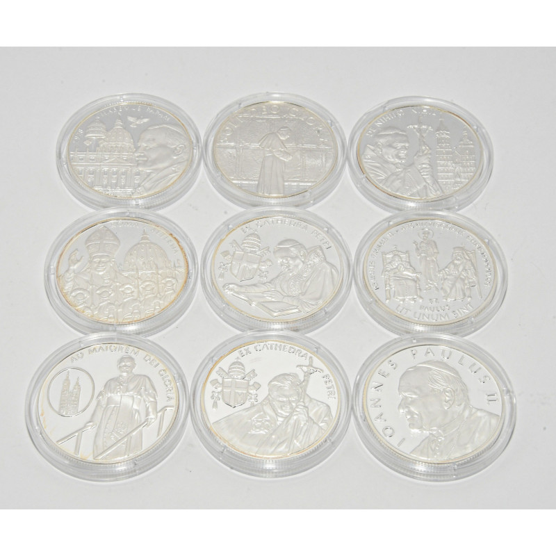 LOTE DE 9 ONZAS DE PLATA PAPA JUAN PABLO II 151/1000 (PLATA 999)