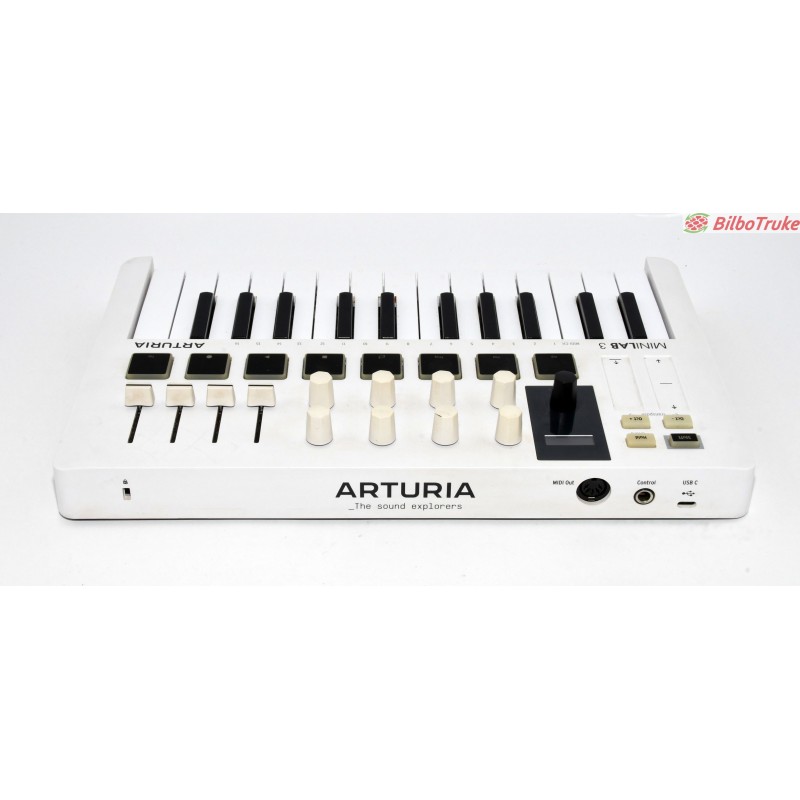CONTROLADORA MODELO: MIDI ARTURIA MINILAB 3 INCLUYE: CABLE USB ESTADO: EN BUEN ESTADO CON SIGNOS DE USO 15 DÍAS DE PRUEBA 1 AÑO DE GARANTÍA