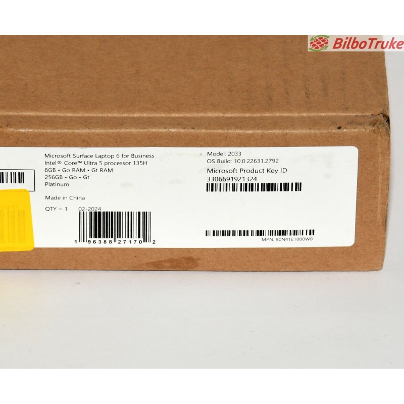 MODELO: MICROSOFT SURFACE LAPTOP 6 BUSINESS 2033 TECLADO QWERTZ CAPACIDAD: 256GB SSD + 8GB RAM DATOS: INTEL ULTRA 5 135H ESTADO: NUEVO CON PRECINTO, TECLADO QWERTZ COLOR: PLATINO 15 DÍAS DE PRUEBA 1 AÑO DE GARANTIA