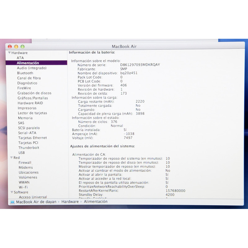 MODELO: MACBOOK AIR A1370 2011