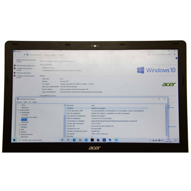CARACTERISTICAS: 15' HD, INTEL CELERON N3060 1.6GHz, INTEL HD GRAPHICS, WINDOWS 10 HOME, HDMI, 3x USB, GRABADORA DVD