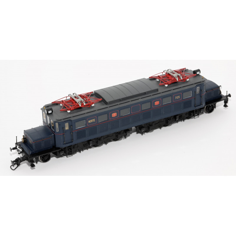 PRECIOSA LOCOMOTORA NORTE SERIE 7100 COLOR AZUL OSCURO CON FRANJA Y FILETEADO ROJO. EPOCA II.
