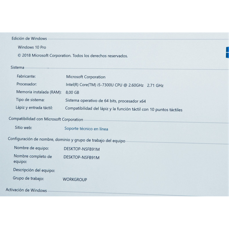 | Software | Windows 10 Pro Prueba de Office de 30 días |