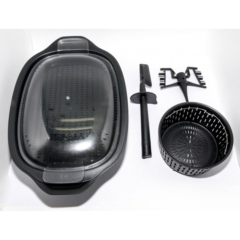 INCLUYE: ESPÁTULA, BANDEJA PARA COCINAR AL VAPOR, MARIPOSA Y ESCURRIDOR
