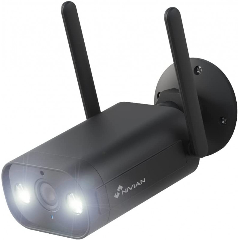 Nivian- Cámara Bullet WiFi 2,4Ghz-Resolución 2K-Apta para Exterior IP66-Función detección Humanos-Visión Nocturna 10m- Compatible con Alexa y Google Home–Control Remoto