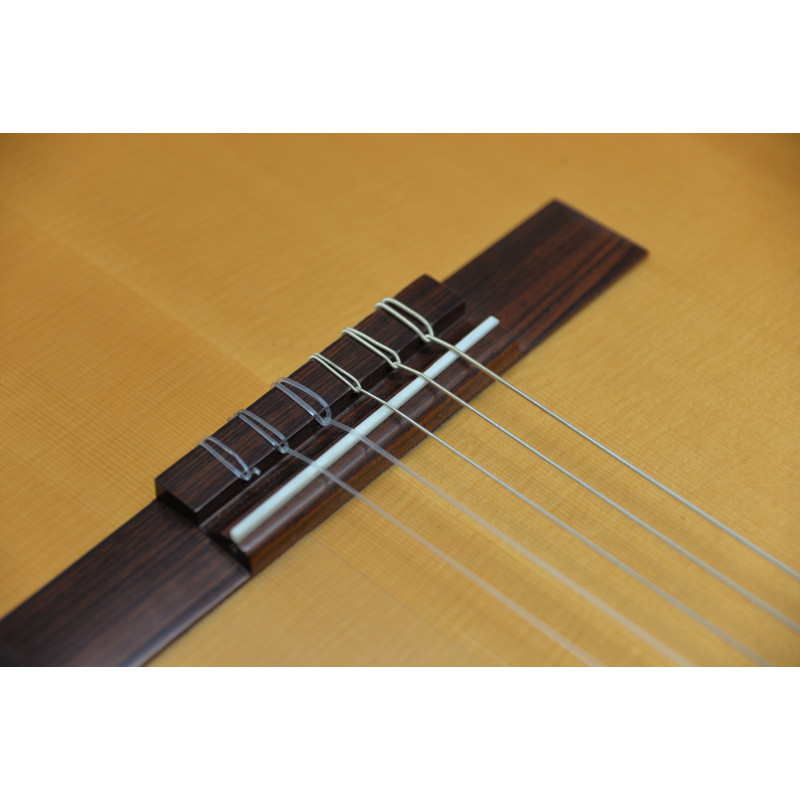 Una acción de cuerdas baja para facilitar la pulsación y la rapidez que requiere el guitarrista flamenco.