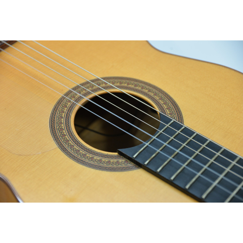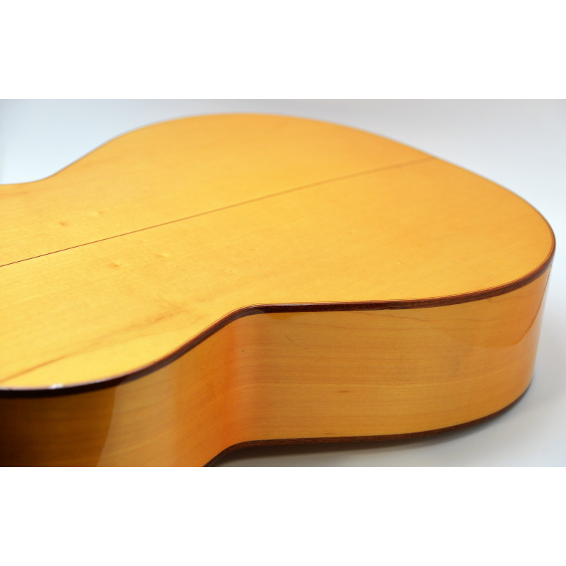 Una boca especialmente bonita y su cuerpo platanero, hacen de ésta guitarra flamenca una preciosidad perfecta para iniciación y nivel medio.
