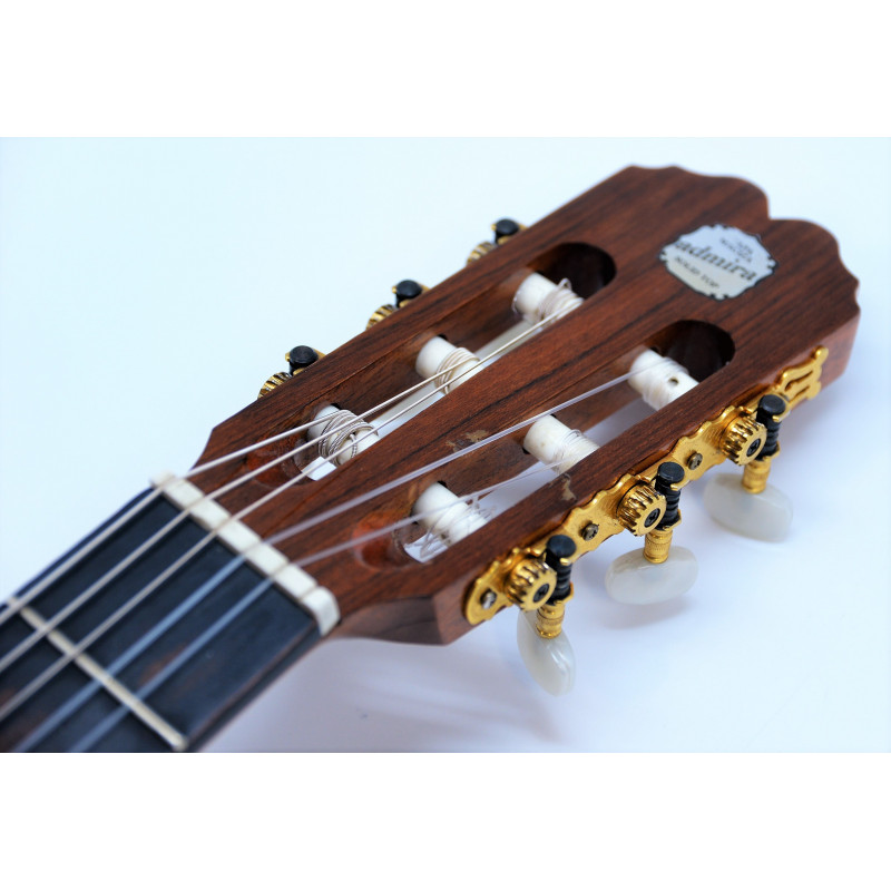 Sonido flamenco y contundente, alto brillo en sus graves y buena compensación. Ésta guitarra del fabricante Admira posee un equilibrio adecuado de tensión en sus cuerdas, perfecto para atacar con el pulgar sin miedo, pero a su vez es muy blandita de tocar. Perfecta para iniciarse a aprender a tocar flamenco.