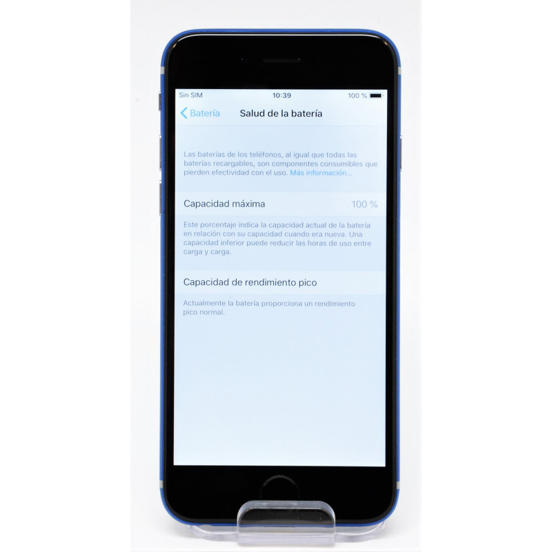 Según Apple , este iPhone 6 tiene una autonomía en stand-by de 250 h. En conversación, puede durar hasta 14 h. La batería no es extraíble, por lo que no puedes reemplazarla si se desgasta o estropea. La capacidad de la batería del iPhone 6 es de 1810 mAh.