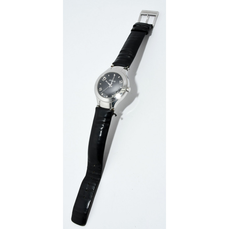 ESTADO: EN BUEN ESTADO GENERAL, CRISTAL PERFECTO; CAJA, TAPA, BISEL Y HEBILLA CON DESGASTE LIGERO, CORREA DESGASTADA