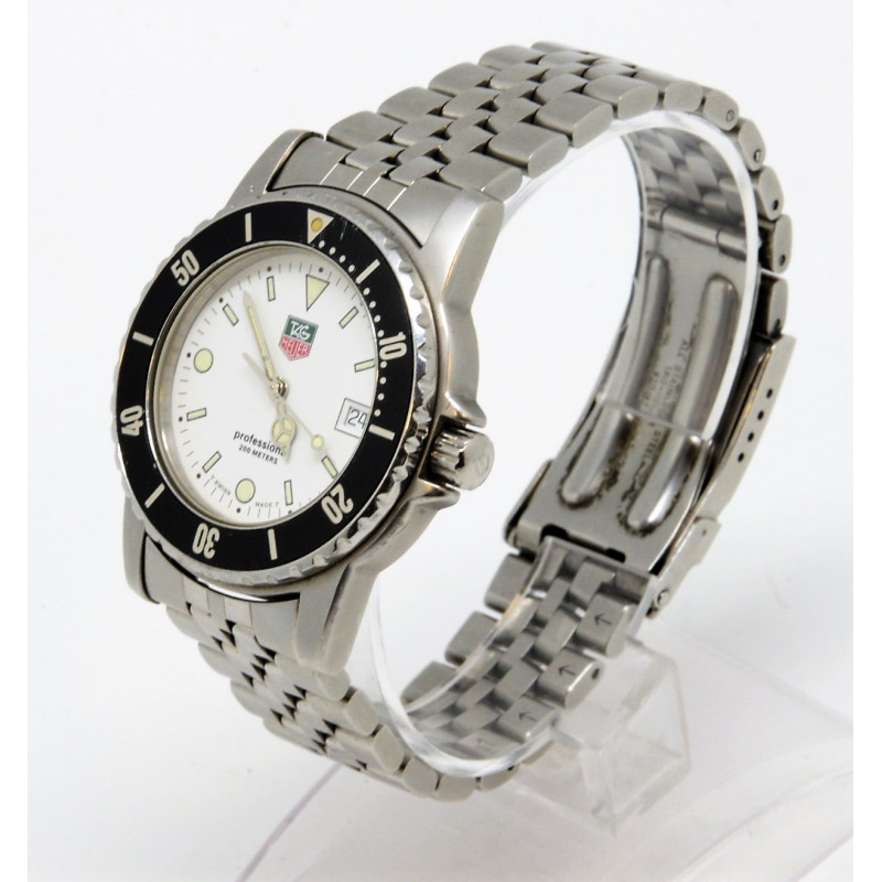 -Modelo Tag Heuer 1500 Professional diver 200M presentado en su estuche original Tag Heuer (tiene la piel de color negro de fuera del estuche deteriorada por el uso).