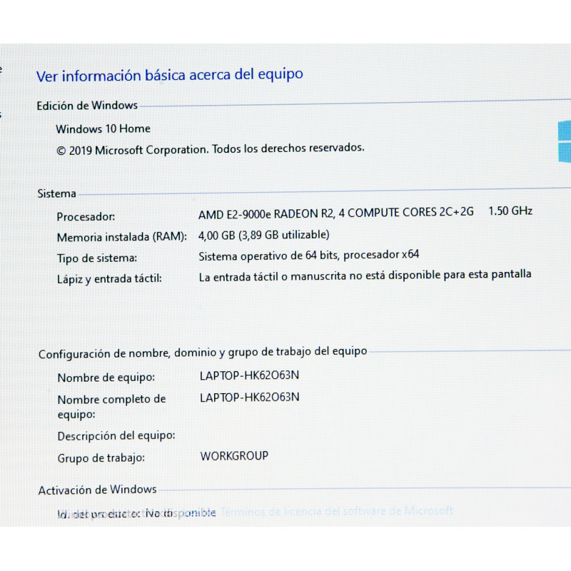 CARACTERISTICAS: PANTALLA 15' HD, AMD E2-9000E 1,5 GH, WINDOWS 10
