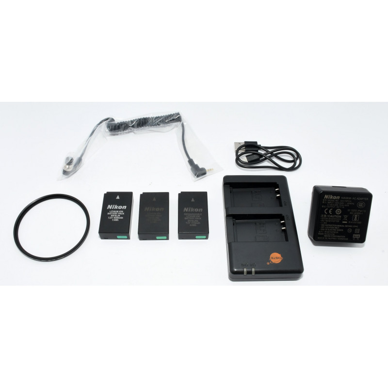 INCLUYE: BOLSA DE VIAJE, CARGADOR COMPATIBLE, 3 BATERÍAS ORIGINALES, TAPA DELANTERA ORIGINAL, PARASOL ORIGINAL, FILTRO UV Y CABLES