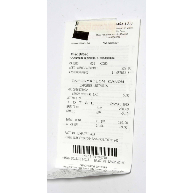 INCLUYE: CARGADOR Y FACTURA DE COMPRA ORIGINAL