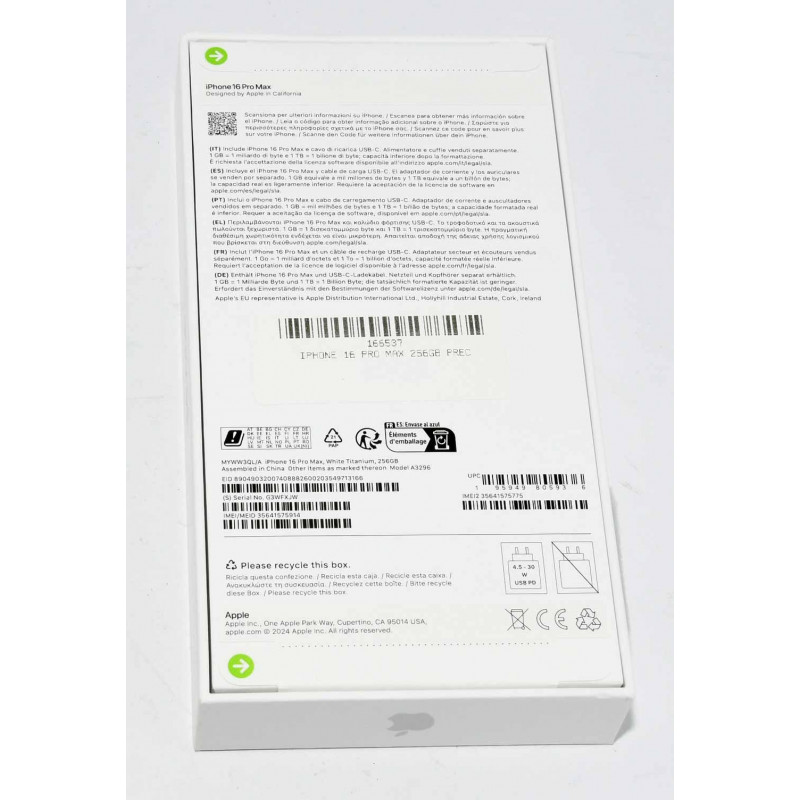 MODELO: APPLE IPHONE 16 PRO MAX 256GB A3296