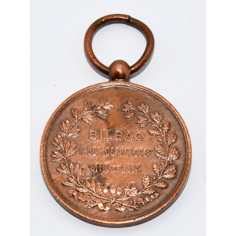 DETALLES: MEDALLA BILBAO A SUS DEFENSORES SITIO 1874, TERCERA GUERRA CARLISTA