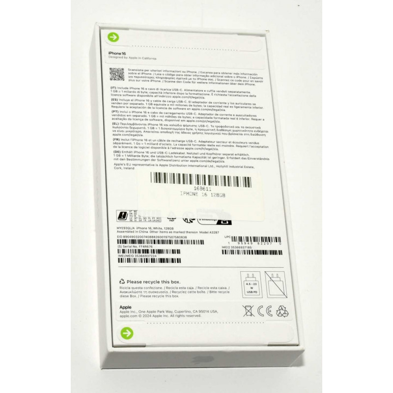 MODELO: APPLE IPHONE 16 128GB A3287