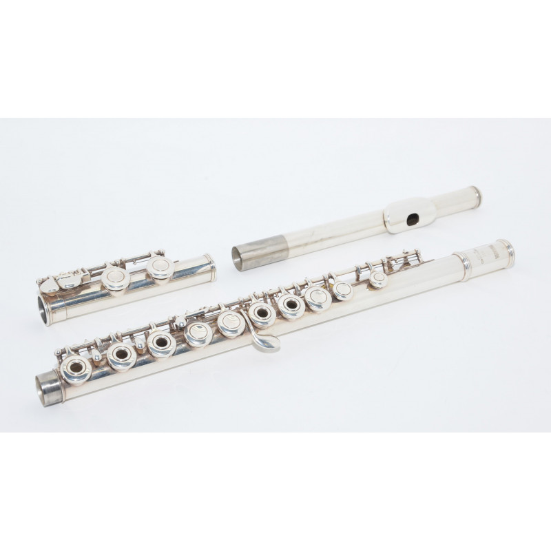 - Flauta travesera de la serie estándar fabricada en níquel plata con acabado de baño de plata.