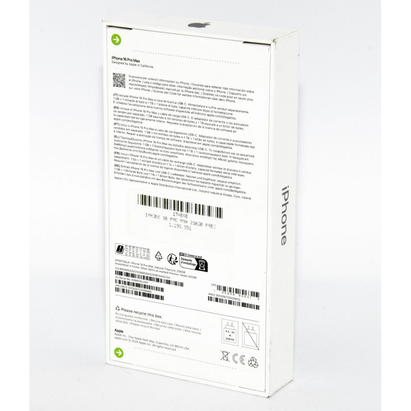 Modelo: IPHONE 16 PRO MAX 256GB A3296