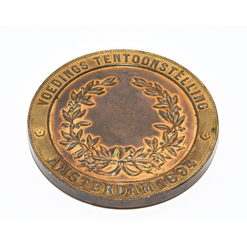 MEDALLA HOLANDESA WILHEMINA KONINGIN DER NEDERLNADEN VOEDINGS TENTOONSTELLINS AMASTERDAM 1894