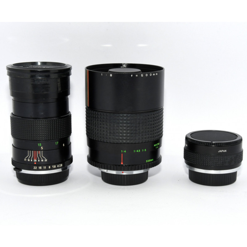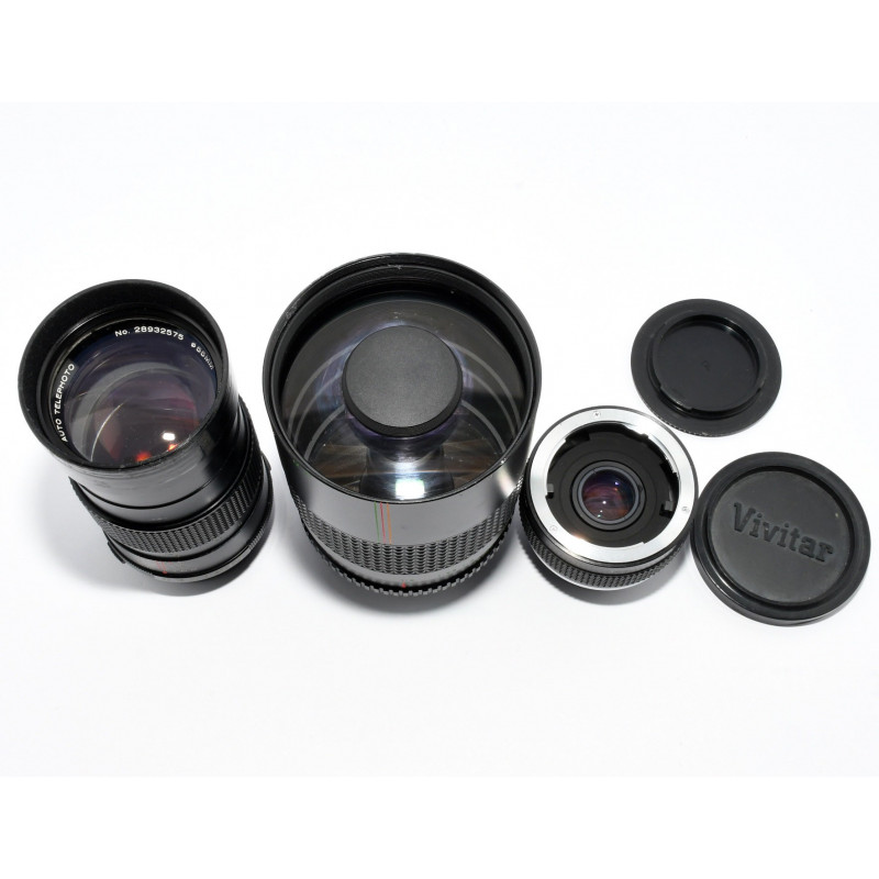 ACCESORIOS DE LA FOTO: DUPLICADOR, 135MM, 50MM, 500MM, Y TAPAS Y MANUAL