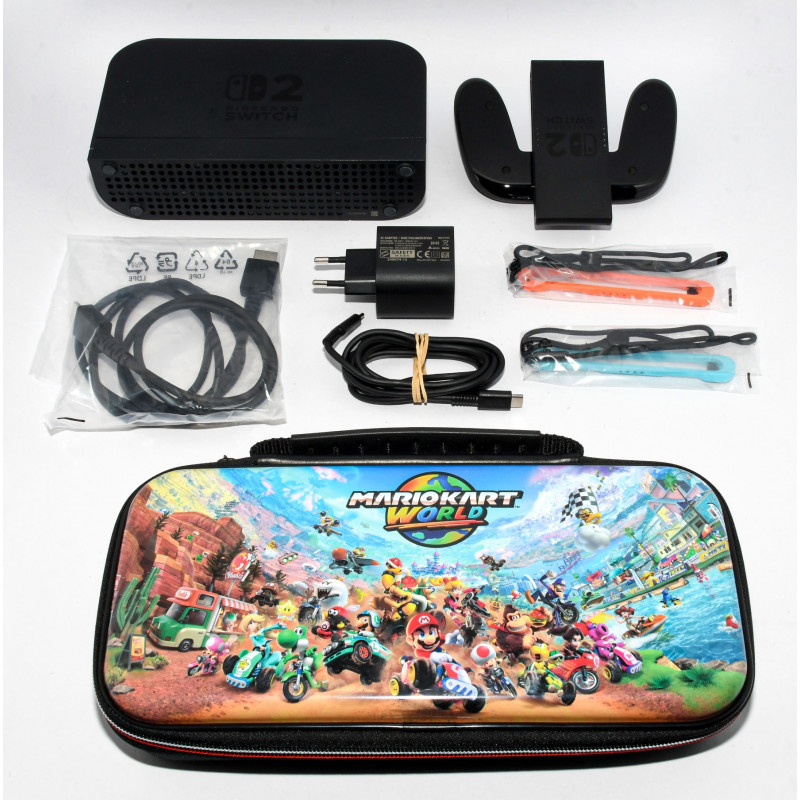 INCLUYE: CAJA (CON SOLAPA ROTA), ACCESORIOS DE LA FOTO Y ESTUCHE RIGIDO "MARIO KART WORLD"