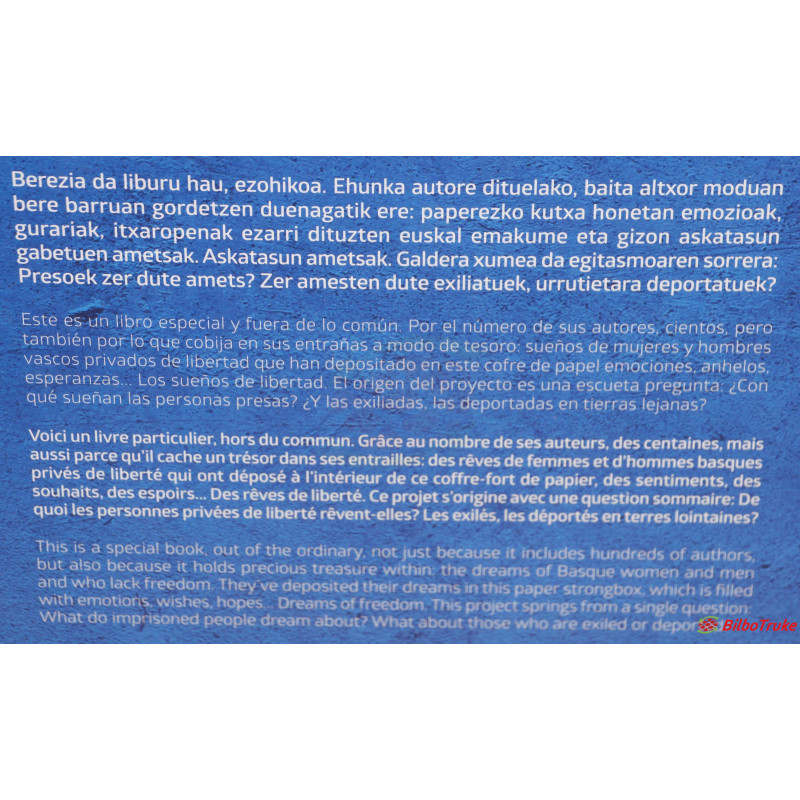 La editorial Astero de Donostia dirigió esa pregunta a todos los presos y presas políticas vascas, en ese momento casi quinientos, y a otros centenares de hombres y mujeres vascas que en algún momento de su vida, incluso aún hoy, han conocido la cárcel, el exilio o la deportación en las últimas cinco décadas. Contactaron con más de dos mil. A todos ellos les propusieron plasmar en una hoja sus sueños mediante la fórmula que eligieran: cartas, poemas, dibujos, bertsos, pintura… Invitaron también a participar en el proyecto a una nutrida representación de renombrados artistas vascos.