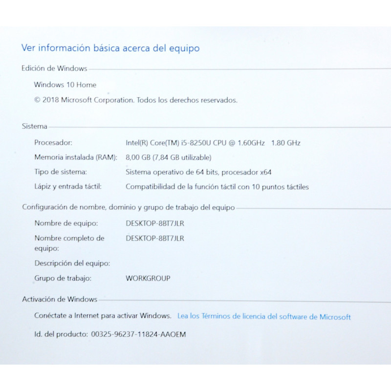 CARACTERISTICAS: PANTALLA 13.3' HD, i5 8250U 1.6GHZ, WINDOWS 10, TECLADO RETROILUMINADO, BISAGRAS 360º, INTEL UHD GRAPHICS 620