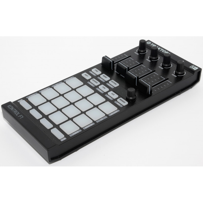 Primeros pasos en cuestión de segundos - la F1 Kontrol incluye alrededor de 4 GB de sonido de primera calidad, pre-cargado como conjuntos de Remix. O usted puede importar sus propias muestras, e incluso capturar loops y sonidos en vivo, utilizando el controlador de estilo multicolor almohadillas ergonómicas y los deslizadores. Expandir el potencial creativo de cualquier Traktor puesta en marcha - con o sin código de tiempo de vinilo - y transformar su set de DJ en una actuación en vivo dinámica.