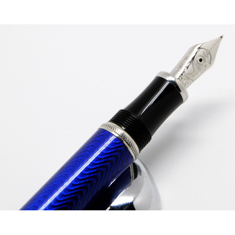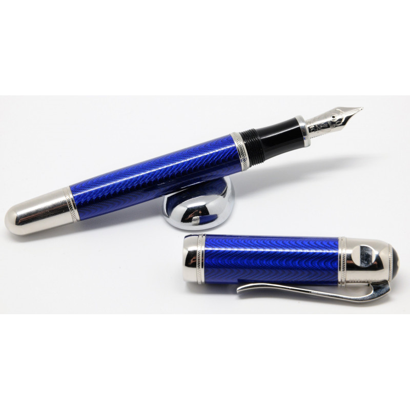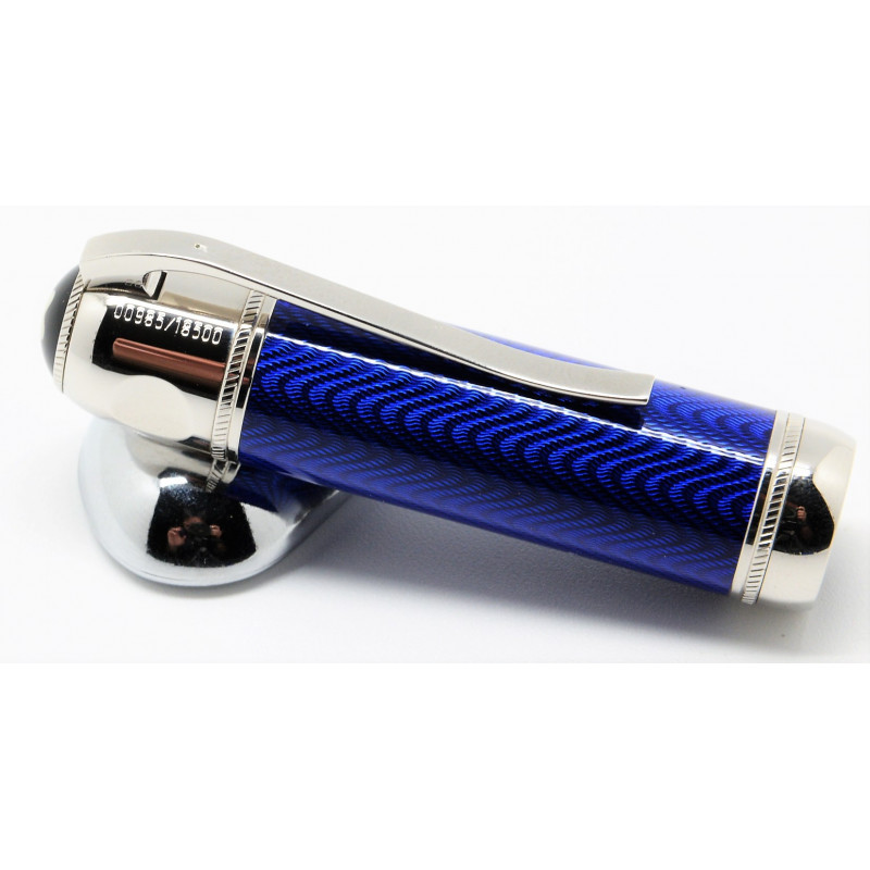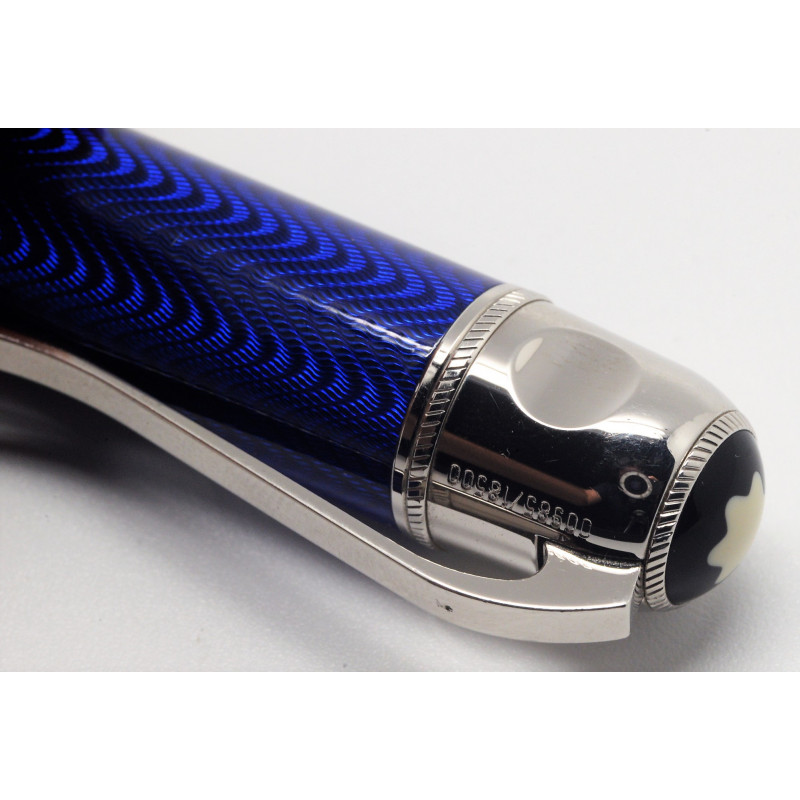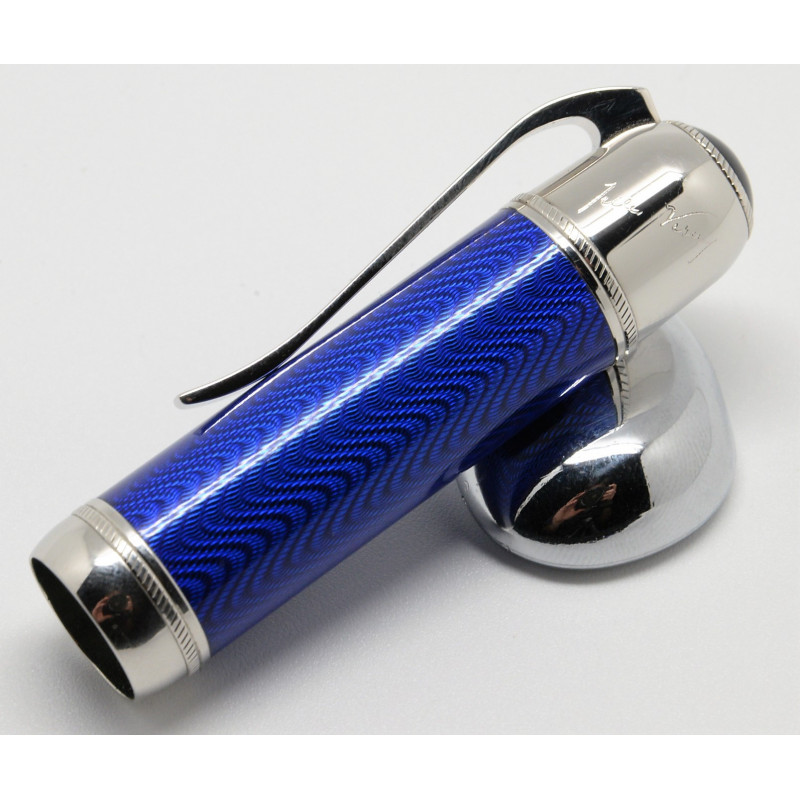 El modelo Julio Verne de la Edición de Escritores sondea el fascinante mundo del escritor. El cuerpo, hecho de brillante laca azul con engastados plaqué de platino, está rodeado por un grabado guilloché formado por ondas regulares. La firma de Julio Verne decora el capuchón de este artículo de escritura y un delicado grabado de un antiguo casco de buzo en el plumín de oro de 18 quilates plaqué de oro de la estilográfica recuerda una de sus más famosas novelas: ”Veinte mil leguas de viaje submarino”.