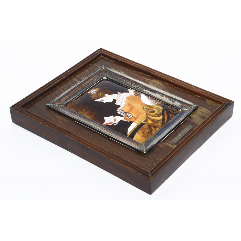 CUADRO MUCHACHA LEYENDO - JH FRAGONARD - ESMALTADO EN MARCO DE PLATA