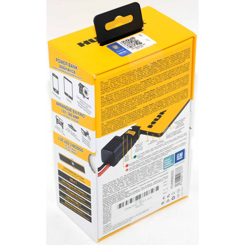 ARRANCADOR (JUMP STARTER) + POWER BANK 6000mAh/2A + LINTERNA LED