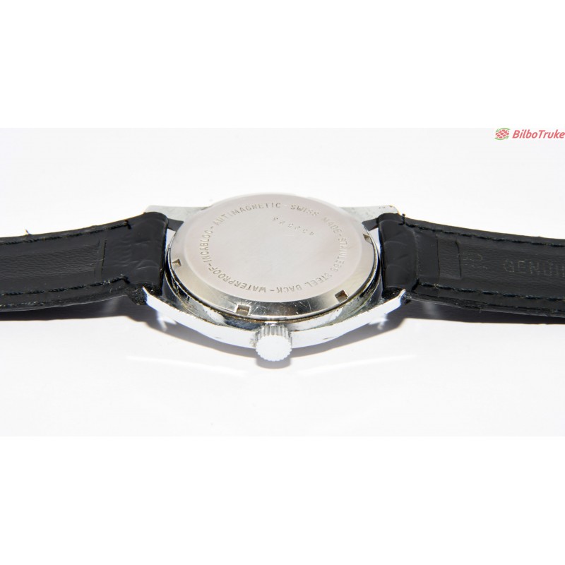 MODELO: LEONIDAS MOVIMIENTO: MANUAL DE CUERDA CAJA: 37MM CON CORONA MATERIAL: CAJA DE ACERO Y CORREA DE CUERO ESTADO: EN BUEN ESTADO GENERAL, SIGNOS DE USO Y DESCONCHES LEVES, CRISTAL RAJADO 15 DÍAS DE PRUEBA 1 AÑO DE GARANTÍA