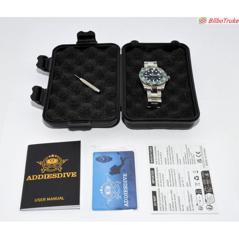 MODELO: ADDIESDIVE 200M MOVIMIENTO: AUTOMATICO CAJA: 42MM CON CORONA MATERIAL: CAJA DE ACERO Y CORREA DE CUERO ESTADO: EN PERFECTO ESTADO 15 DÍAS DE PRUEBA 1 AÑO DE GARANTÍA
